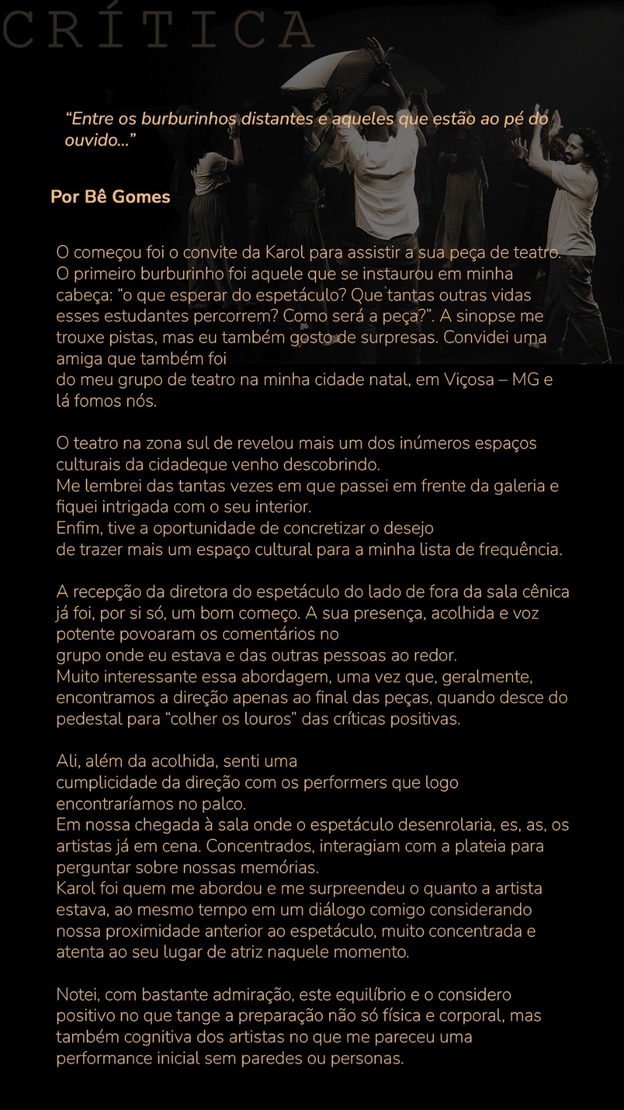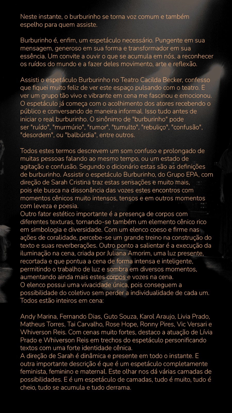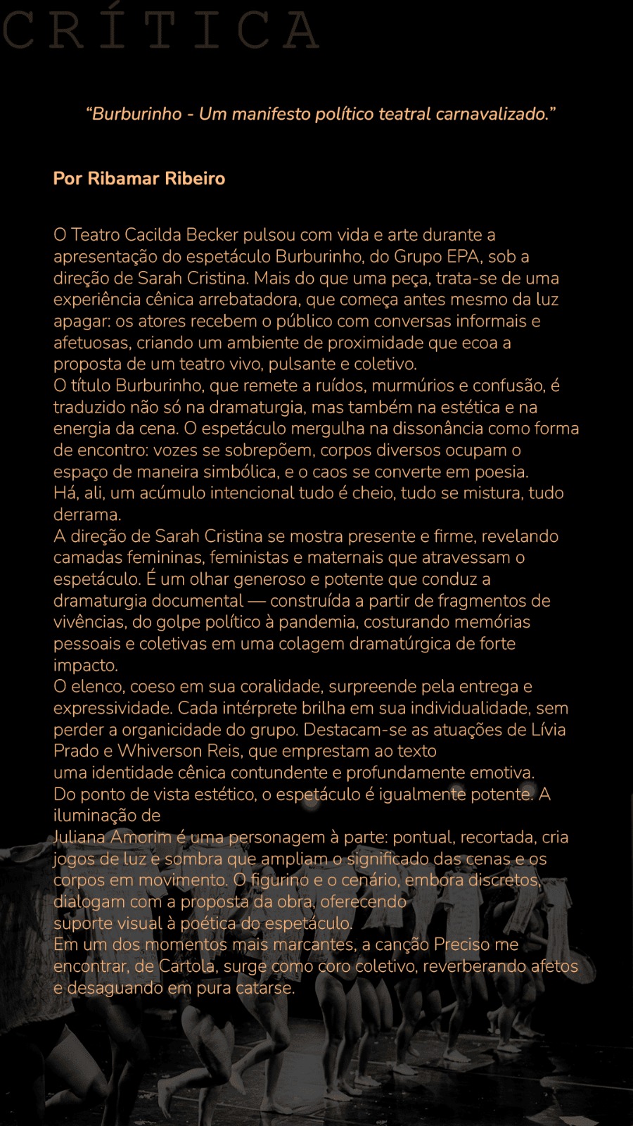 Críticas de pensadores, pesquisadores e artistas sobre as nossas obras teatrais.